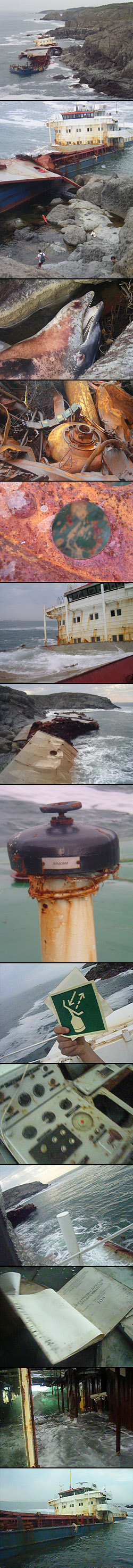 Onur, Ozgur and me went to Kilyos to have some fun with the sea. But we found out that the sea was yet extremely cold and decided to wander around and make some explorations :) Hey! How lucky we are, we found this fresh ship wreckage! :) We also found a dead dolphin in the ruins :( It was pure excitement inside the ship. It was semi-sunk and there were still some goods around :P See the strong sea waves pass through the hall floor! |